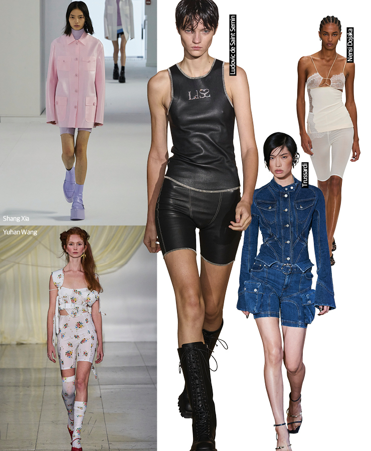 엄청난 인기를 끌다가 어느 순간 사라진 아이템, 바로 스키니 팬츠. 세기말 바닥을 쓸고 다닐 정도로 긴 기장의 ‘힙합바지’, 당장이라도 트위스트를 출 것만 같은 ‘나팔바지’도 재유행했는데, 스키니 팬츠라고 안 돌아올쏘냐. 아니, 어쩌면 귀환이 그리 멀지 않았다. 카이아 거버, 헤일리 비버, 제니 등 옷 잘 입기로 소문난 셀럽들이 지금껏 스키니 팬츠를 포기하지 않았다는 사실이 이를 방증한다. 이번 시즌, 넨시 도자카와 키코 코스타디노브, 트루사르디, 루도빅 생 세르넹, 오토링거 등이 다리 라인을 고스란히 드러내는 실루엣의 쇼츠를 선보였다. 그 중 사이클링 쇼츠가 압도적인 비율을 차지했는데, 신축성 있는 스포티 소재가 관능적인 건강미를 극대화한다.