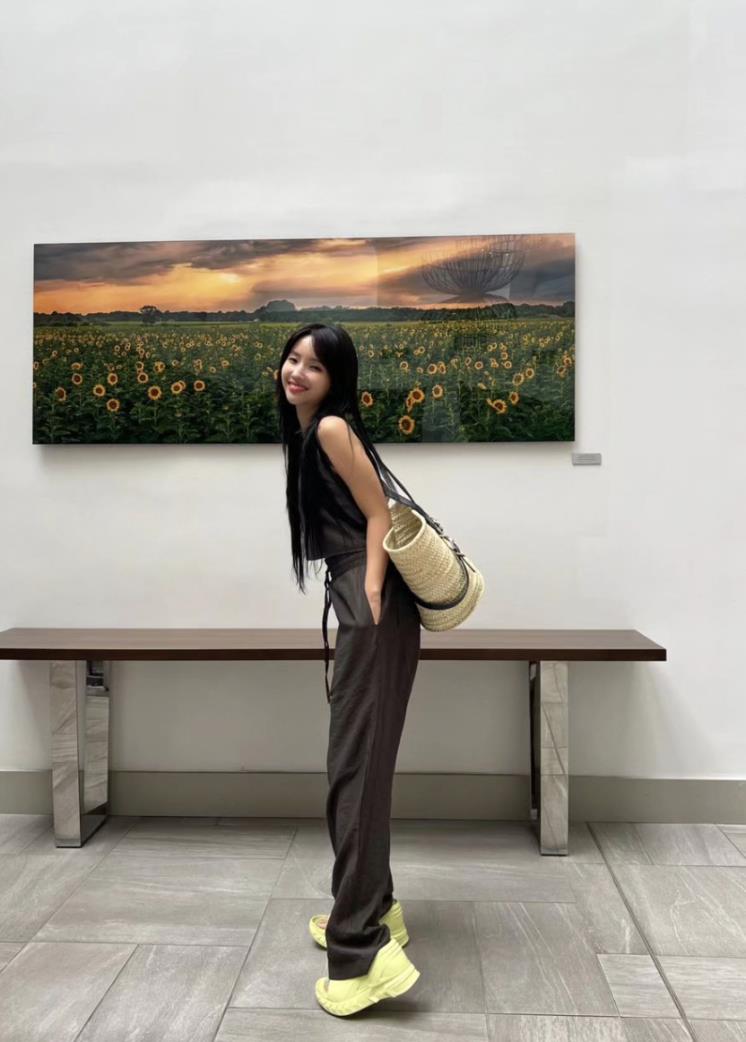여름철 데일리룩의 정석! 심플함은 물론 시크한 무드까지 겸비한 아이돌 전소연의 오오티디. 리넨 소재의 슬리브리스와 팬츠를 매치 후 여기에 바구니 모양을 연상케 하는 여름 무드의 라탄백으로 한층 더 가볍고 경쾌한 룩을 완성했다.