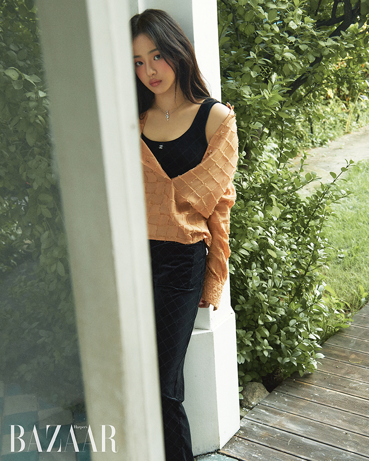 카디건은 Chanel. 탱크톱은 스타일리스트 소장품.