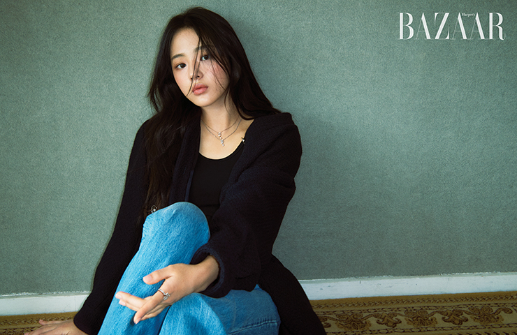 카디건, 데님 팬츠는 Chanel. 탱크톱은 스타일리스트 소장품.