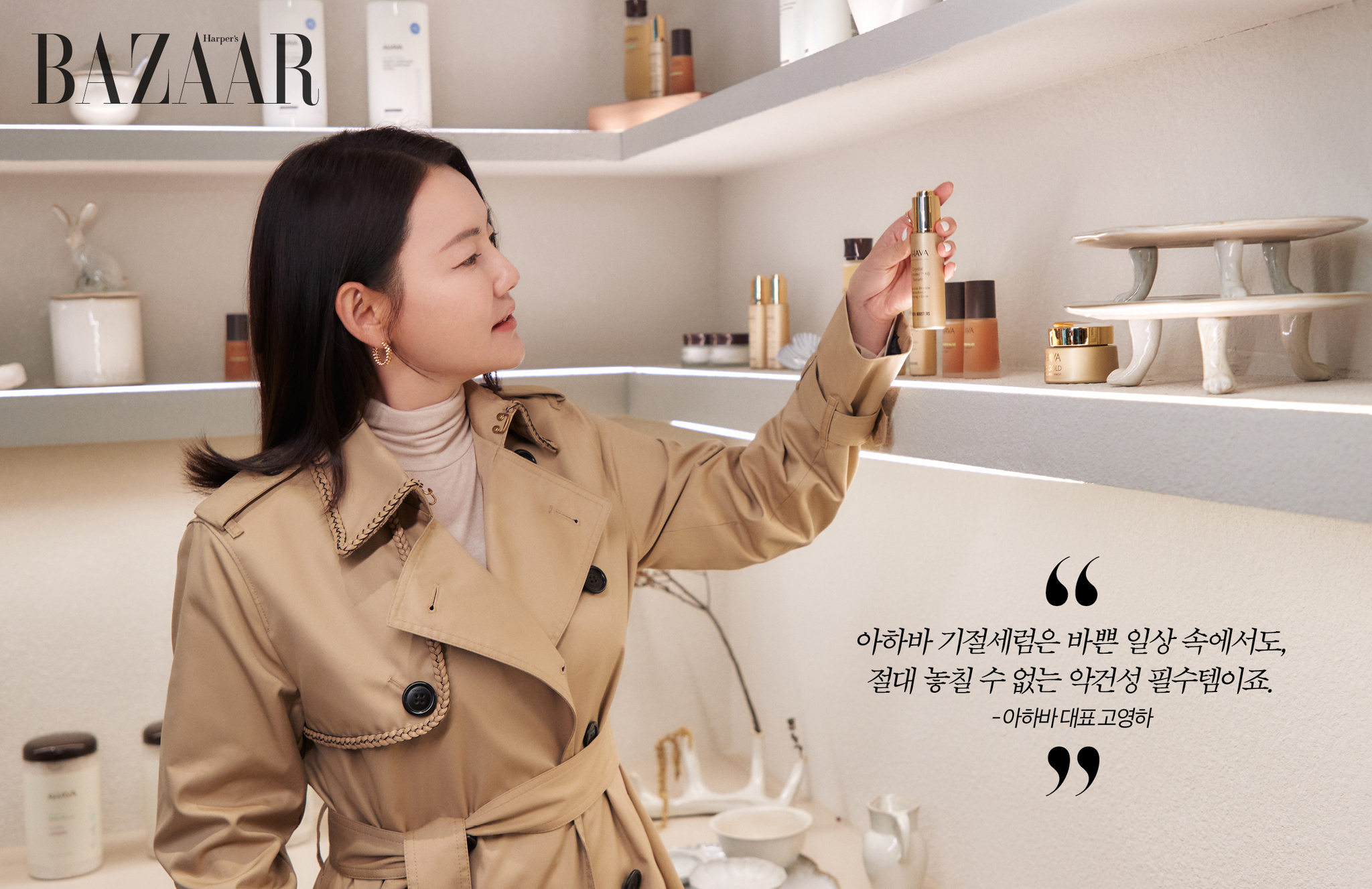 다양한 사업으로 바쁜 일상 속 아하바 기절세럼 하나만으로 피부 컨디션을 관리해, 피부에 신경 쓸 시간을 일에 투자한다고 밝힌 그. 하루 중 가장 중요한 루틴이자, 일의 효율을 높여주는 아이템으로 칭찬을 아끼지 않는다.