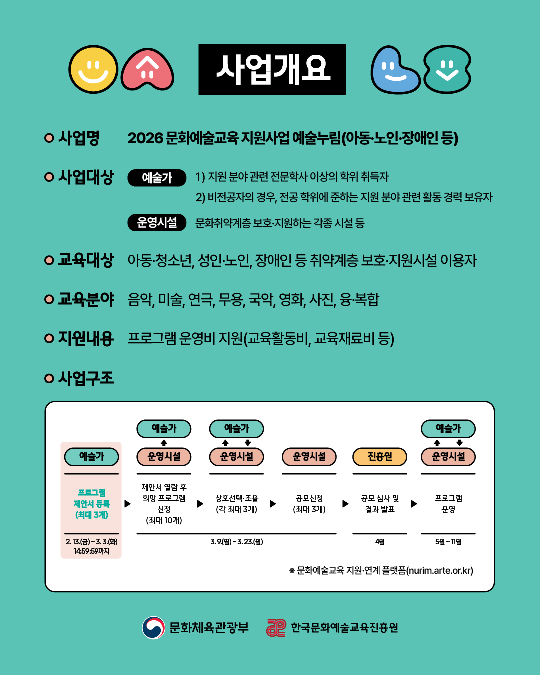 [출처] 2026 예술누림(아동·노인·장애인 등) 예술가 프로그램 제안서 등록 안내|작성자 아르떼
