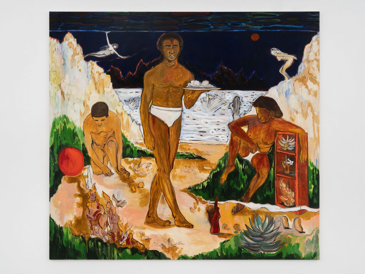 가나 아크라 출신의 기디언 아파는 보석 빛깔을 연상케 하는 강렬한 인물화로 잘 알려져 있다. 가나가 독립한 1975년 이후 제작된 영화와 다큐멘터리 등 시각 매체에서 영감을 받아 만든 작품은 마치 연극의 한 장면처럼 보인다. 주로 해안 배경에 수집한 이미지를 바탕으로 상상하고 재해석한 누드와 세미누드 인물을 매혹적으로 펼쳐 내기도 한다. 생생한 색의 물감을 두껍게 겹쳐 바르는 기법은 층이 쌓인 곳과 얇게 발린 곳의 어우러짐으로 추상적인 형상을 만들어낸다. 이런 장치들은 관람객을 더욱 몽상에 빠트린다.
