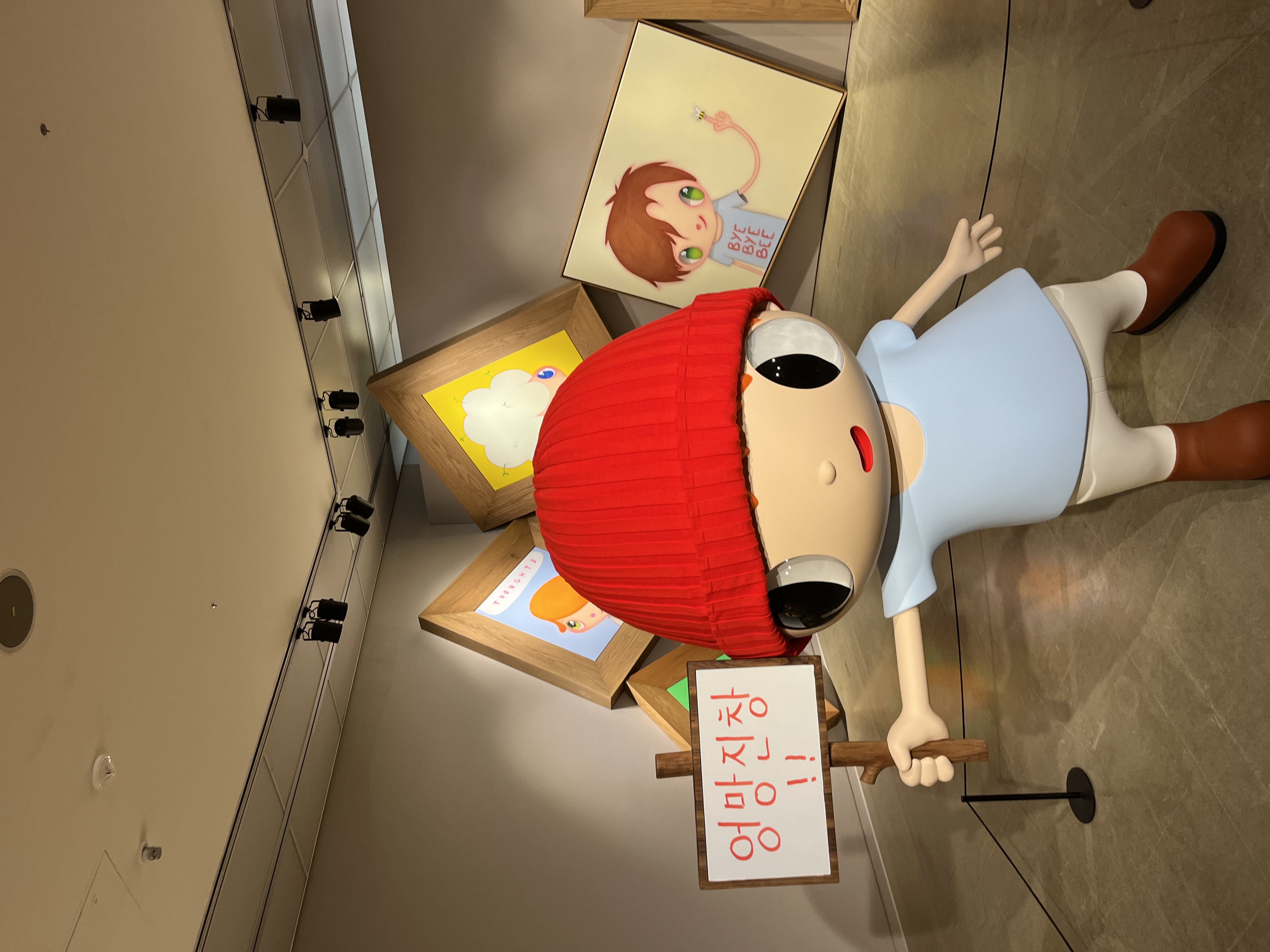 순수하지만 그렇기에 예측할 수 없는 어린 아이의 생각들을 캐릭터로 형상화한 것 같았다 작품 자체도 상당히 매력적이였지만 전시의 구도와 장치들을 상당히 잘 활용하였다