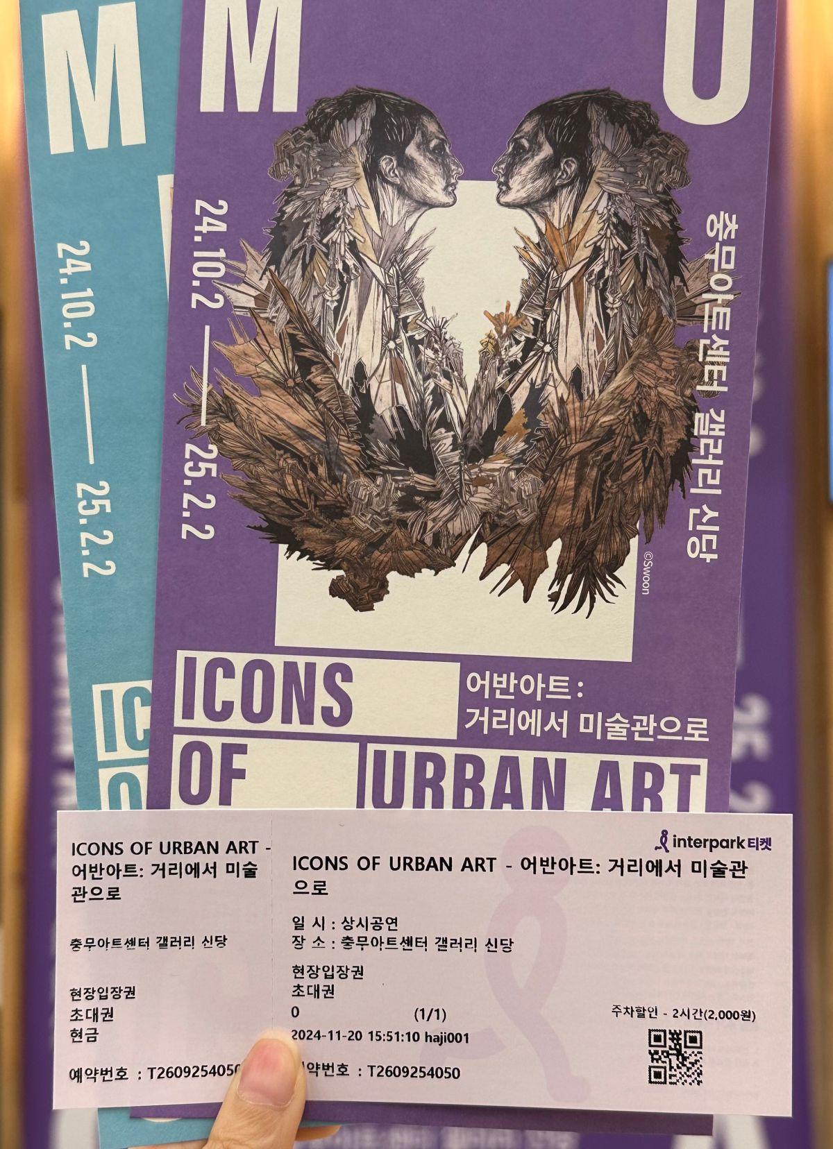 11월 20일, 예술산책에서 진행한 티켓이벤트에 당첨되어 ‘충무아트센터 갤러리 신당’에서 진행중인, 어반아트의 대표작가 10인의 다채로운 작품들을 볼 수 있는 <ICONS OF URBAN ART _ 어반아트: 거리에서 미술관으로> 전시를 관람하고 왔습니다. 우선 어반아트는 도시 공간에서 탄생한 시각 예술로, 그라피티와 스트리트 아트 등 다양한 형태를 포함하며, 거리에서 시작하여 21세기 현대 미술의 핵심 장르로 자리잡은 어반아트 작품들은 도시의 풍경을 변화시키고, 정치적 및 사회적 메시지를 전달하며, 사람들의 마음에 깊은 울림을 줍니다. 특히, 이번 전시는 유럽 최대 규모의 어반아트 컬렉션을 자랑하는 독일 MUCA의 소장품으로 구성되어 있으며, MUCA의 영구 소장품 중 신중하게 선별된, 뱅크시, 카우스, 제이알, 셰퍼드 페어리, 리처드 햄블턴 등 어반아트의 대표 작가 10인의 작품 72점을 통해 어반아트의 다채로운 매력을 한자리에서 경험할 수 있었습니다. 평소에도 어반아트에 관심이 많았던 저로써는, 관람 전부터 이 전시가 굉장히 흥미로웠습니다. 과거 개인전을 통해 접하게 된 제이알과 셰퍼드 페어리, 독특한 디자인과 다채로운 컬러로 누구에게나 사랑받는 카우스, 이색적이며 위트있고 다양한 내적의미를 지니고 있는 뱅크시까지! 제가 너무 좋아하는 작가들이어서 더 그랬던 것 같습니다. 무엇보다 뱅크시의 작품들이 제일 인상깊었습니다. 그의 작품들 속에 배치된 강렬하고 익살스러운 모티프와 대담한 블록 레터와, 그 속에 드러나는 주된 메시지가 전쟁, 자본주의, 제도권의 권력 남용에 대한 비판이라는 점. 그래서 유독 심오한 관점에서 관람했던 것 같습니다. 또한, 오디오 가이드와 함께 작품들 옆에 설명이 다 적혀 있었는데 작품 이해에 있어 굉장히 도움이 많이 되었습니다. 예술산책덕분에 어반아트에 대해 더 폭넓게, 재밌게 보고 온 것 같습니다! 초대해 주셔서 진심으로 감사드립니다>_<♡ 남은 연말도 뜻깊게 잘 마무리하시길 바랍니다🙏🏻