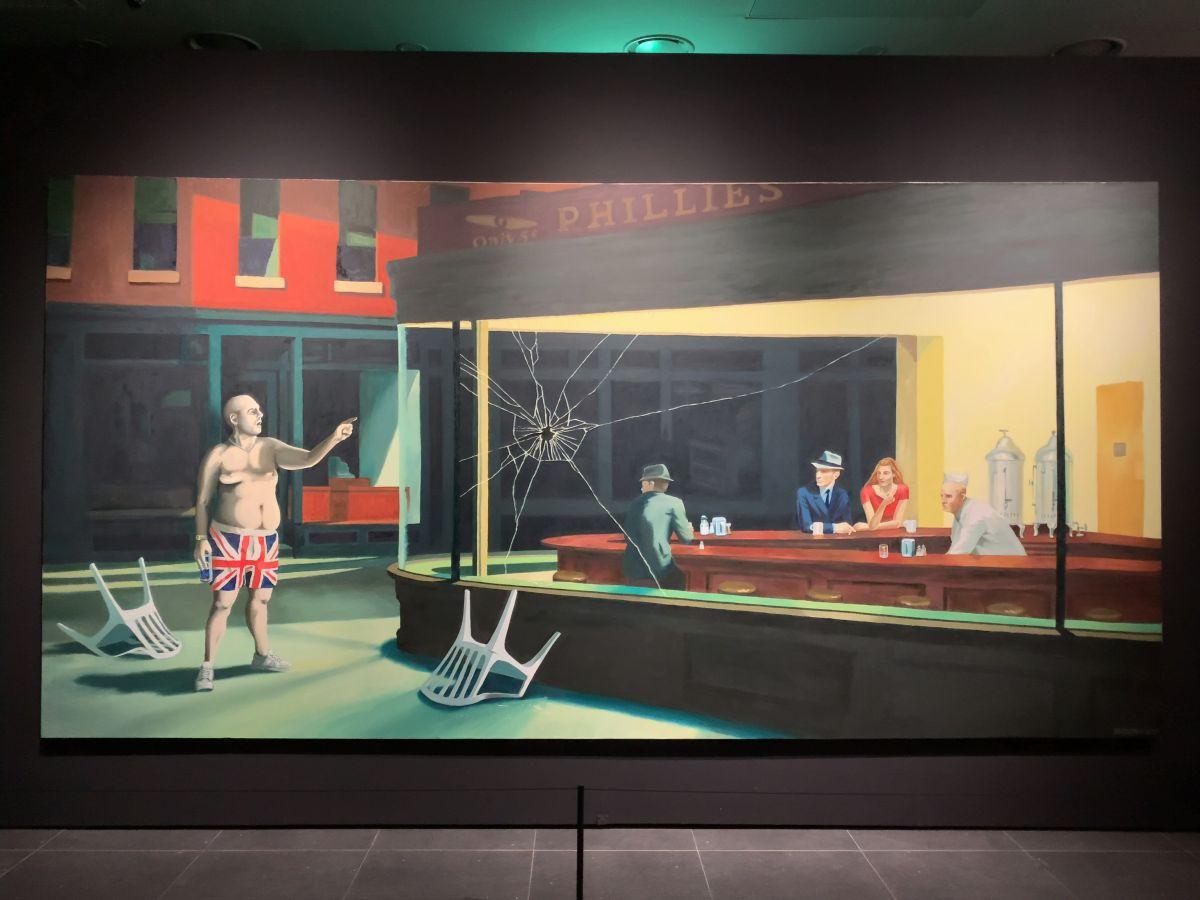 도시를 배경으로 사회적 메세지나 부조리한 현실을 비트는 설치, 시각 미술이다. 유럽에서 어반아트 작품을 가장 많이 가지고 있는 독일 MUCA 소장품 전시인데 일본을 거쳐 우리나라에 상륙한 모양이다. 어반아트로 명성이 자자한 작가들이 많아서 마치 쇼미더머니 프로듀서 싸이퍼를 보는 기분이었다. 뱅크시, 셰퍼트 페어리, 제이알, 제이알, 카우스, 인베이터는 이제 반갑다, 친구야, 에이요! 할 수 있을 것 같다. 뱅크시 디즈멀랜드의 에리얼, 빌스의 분산 시리즈가 인상 깊었다. 호퍼의 ‘밤을 지새우는 사람들’을 오마주한 ‘그 의자 쓰는 거예요?’는 마침 에드워드 호퍼의 영화가 개봉 중이라 더 흥미로웠는데 호퍼의 작품에서는 등장인물이 시선을 피하는 것에 비해 뱅크시는 그 인물들의 시선을 사로 잡는다. 훌리건의 관심끌기 성공이네. MD샵에서 작년 서울시립미술관 호퍼 전시 관련 MD만 잔뜩 산 것도 웃음 포인트. 엇! 그러고보니 어반아트 예술가들에게 영감을 주기 위해 큰 그림 그린 것인가? 어둠의 한강 팬이라 한강 작가님 노벨상 탈 때 맞춰서 더 주목받고 책 많이 팔라고 이 난리인가 싶었는데 어반아트 쪽도 분발해야겠다.