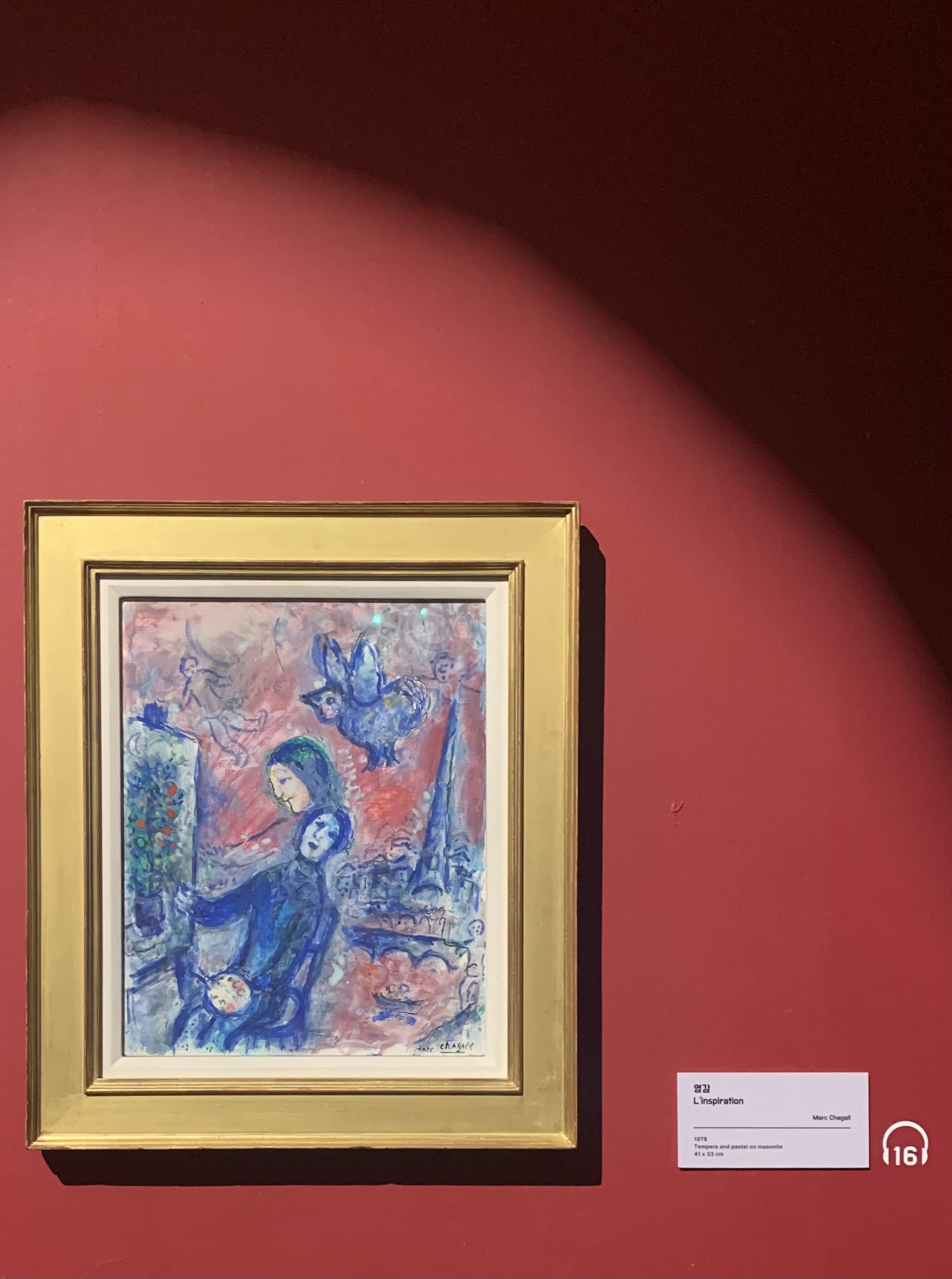 마르크 샤갈이 표현한 다양한 색감을 경험하고 그 조화를 느낄 수 있는 전시이자 석판화의 매력도 함께 느낄 수 있는 전시였습니다. 특히 라퐁텐 우화 삽화 시리즈는 동심으로 돌아가 어떤 우화였는지 생각해 보고 작품의 제목을 확인해 보는 재미가 있었다는 점! 2시간도 부족할 만큼 시간 가는 줄 모르고 감상했습니다👍 예술산책 덕분에 마르크 샤갈 작품을 가까이에서 몰입하며 감상하는 소중한 시간가졌습니다💕