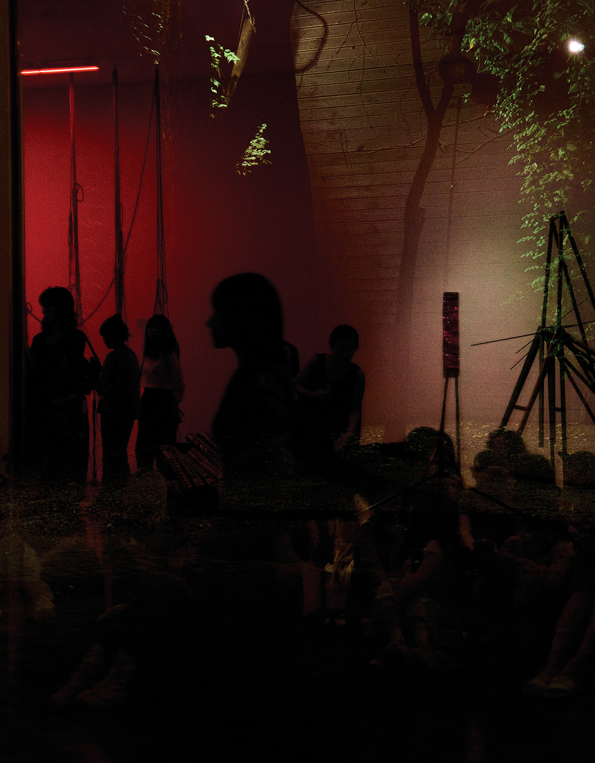 아드리안 비야르 로하스 개인전 «적군의 언어» 전시장 사이로 보이는 야경.